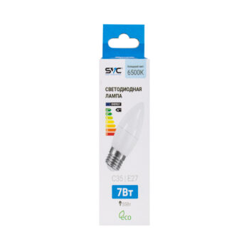 Лампа светодиодная SVC LED C35-7W-E27-6500K Свеча Холодный