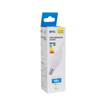 Лампа светодиодная, SVC, LED CB35-9W-E14-3000K, Свеча на ветру, Мощность 9Вт, Тип колбы CВ35, Цвет. температура 3000K, Цоколь E14, Тёплый
