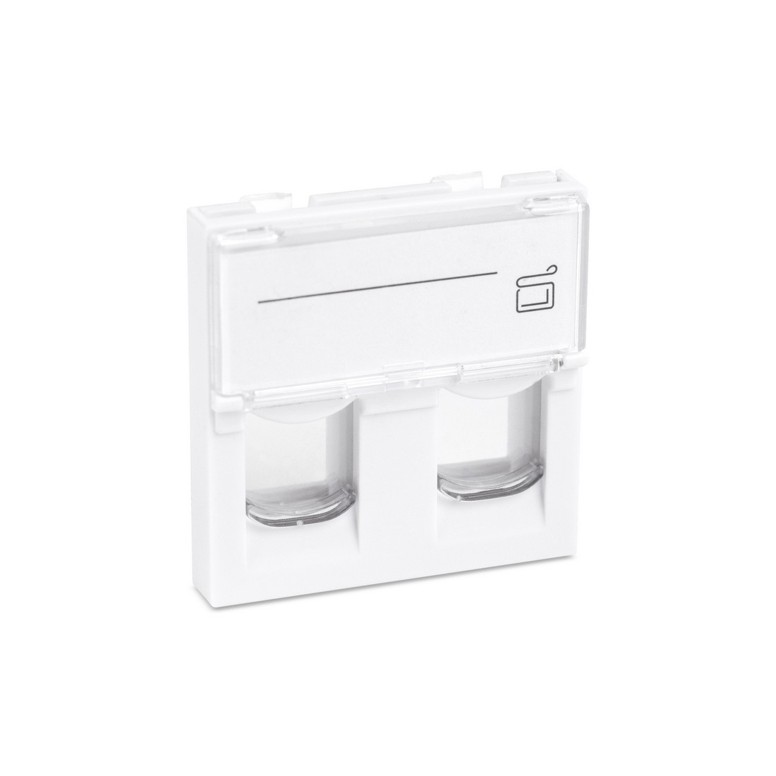 Лицевая панель телекоммуникационная,, LY-FP66, Со шторкой, 2 модуля, Белая, 45×45мм
