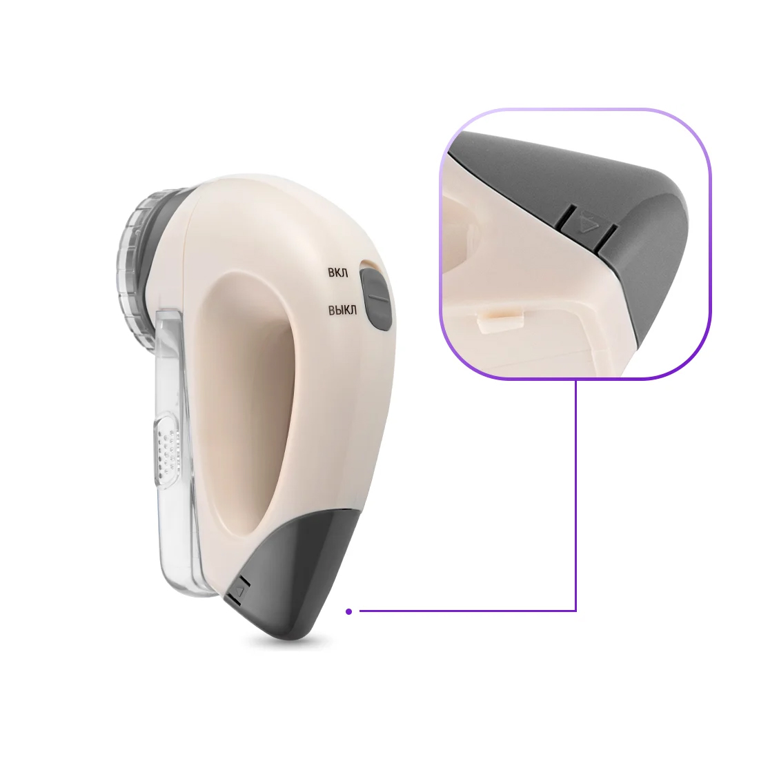 Машинка для удаления катышков с одежды, Kitfort, КТ-6393, Скорость вращения ножей 6000 ± 10% об/мин, Объем контейнера 60 мл, Съемный контейнер, Питание от батареек 2* AA (не входят в комплект), Бежевый