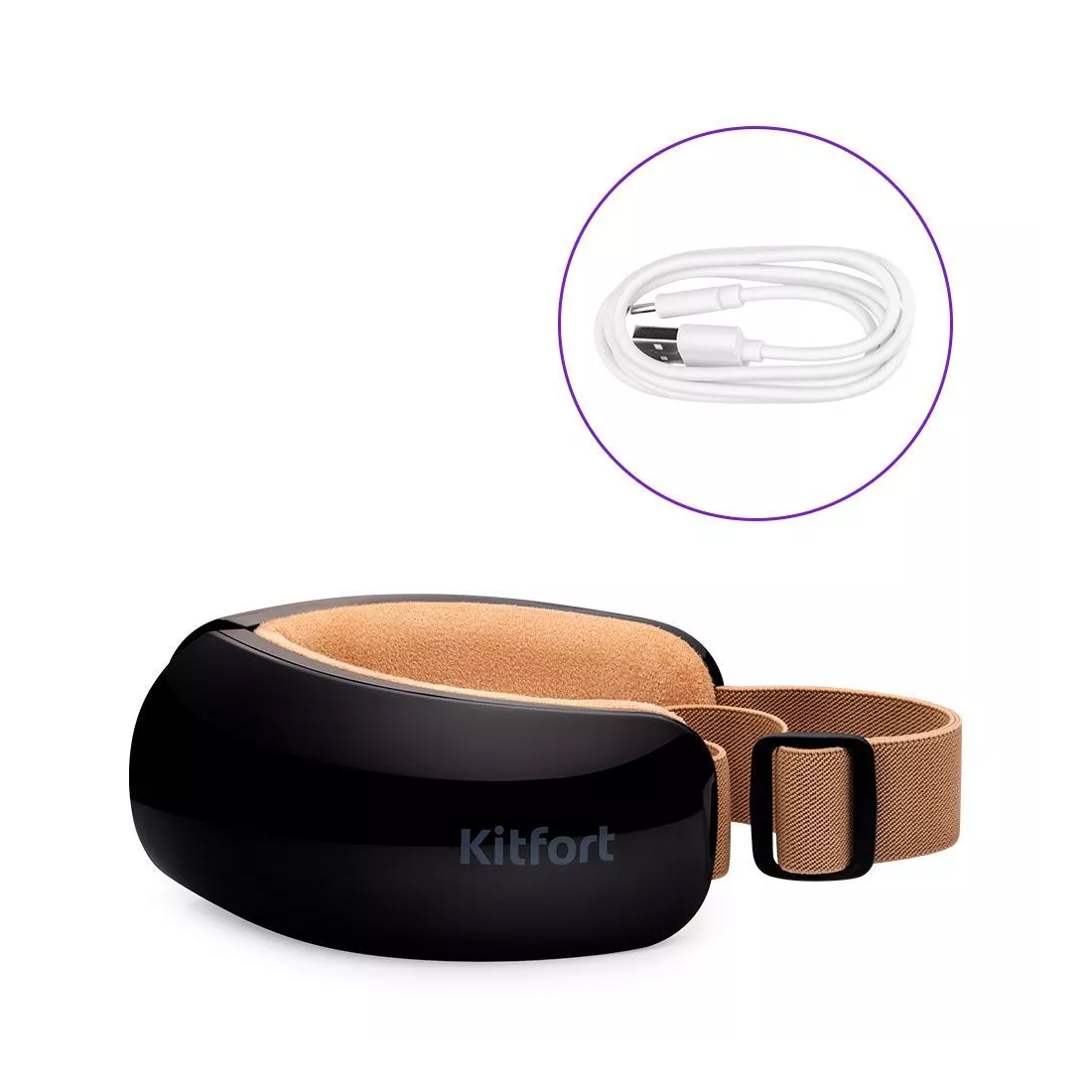 Массажер для глаз, Kitfort, КТ-2949, Мощность 5 Вт, Вибрация, Сжатие, Нагрев, Автоотключение, Управление сенсорное, Нагерв, Музыка, Время заядки 2-2,5 ч, Цвет коричневый