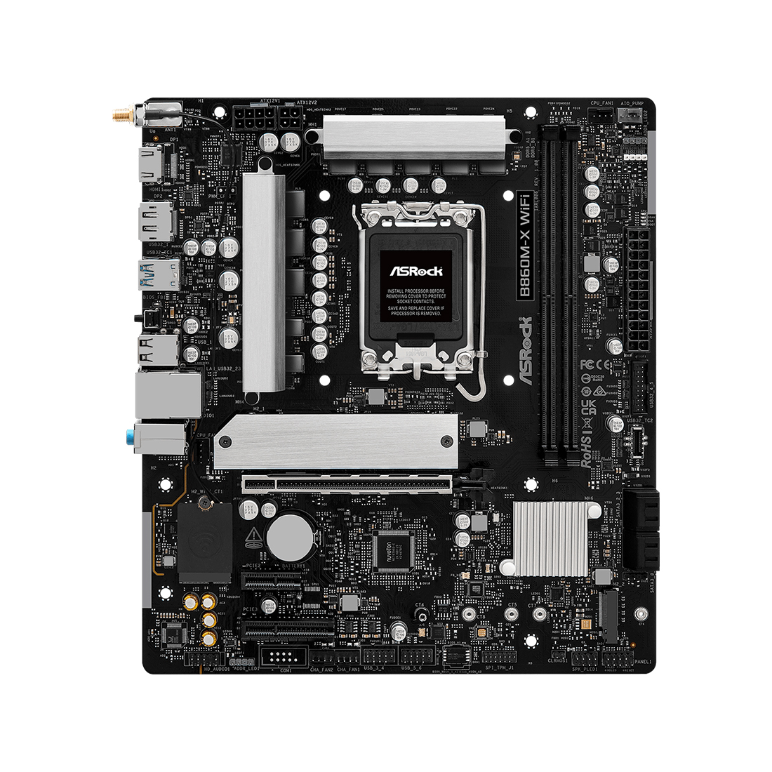 Материнская плата, ASRock, B860M-X WIFI (4711581490413), LGA1851, B860, 2xDDR5 6400/9066+(OC), 4xSATA3, 2xM.2 (PCI-E 4.0×4), Raid, 1xDP, 1xHDMI, 1xPCI-Ex16, 1xPCI-Ex4, 1xPCI-Ex1, WiFi, mATX