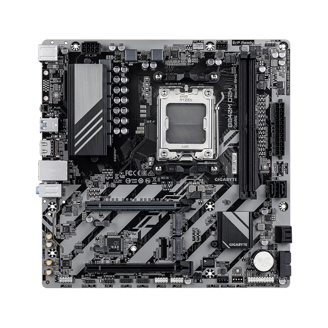 Материнская плата, Gigabyte, B840M D2H (4719331868116), AM5, B840, 2xDDR5 4400/4800/5200/7600(OC), 4xSATA3, Raid, 2xM.2 (1*PCI-E 4.0×4/x2, 1*PCI-E 3.0×2), 1xHDMI, 2xPCI-Ex16, mATX