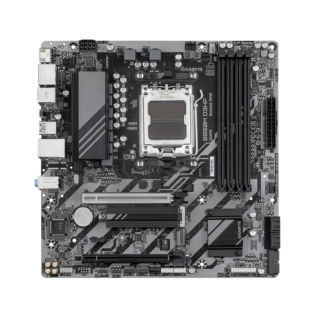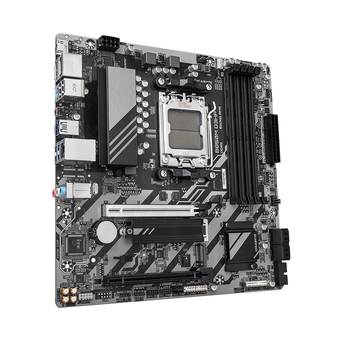 Материнская плата, Gigabyte, B850M D3HP (4719331867058), AM5, B850, 4xDDR5 4400/4800/5200/8200(OC), 4xSATA3, 2xM.2 (PCIe 4.0 x4/x2), RAID, 1xHDMI, 2хDP, 2xPCI-Ex16, mATX
