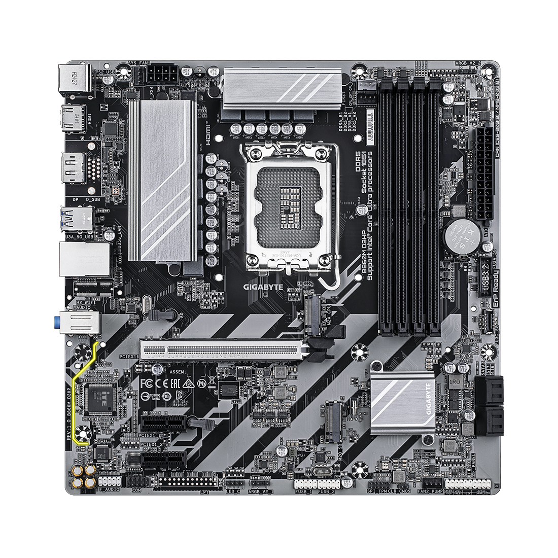 Материнская плата, Gigabyte, B860M D3HP (4719331866860), LGA1851, iB860, 4xDDR5 5600/6400/9066(OC), 4xSATA3, Raid, 2xM.2 (PCI-E 4.0×4/x2), 1хDP, 1xHDMI, 3xPCI-Ex16, mATX