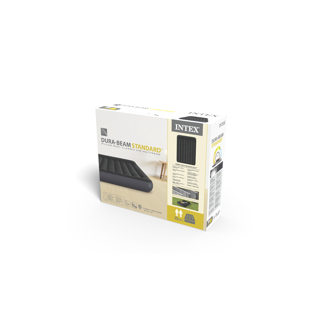 Матрас надувной Pillow Rest (Full) 191 х 137 х 25 см, INTEX, 64142, Винил, Встроенная подушка, Чёрный, Цветная коробка
