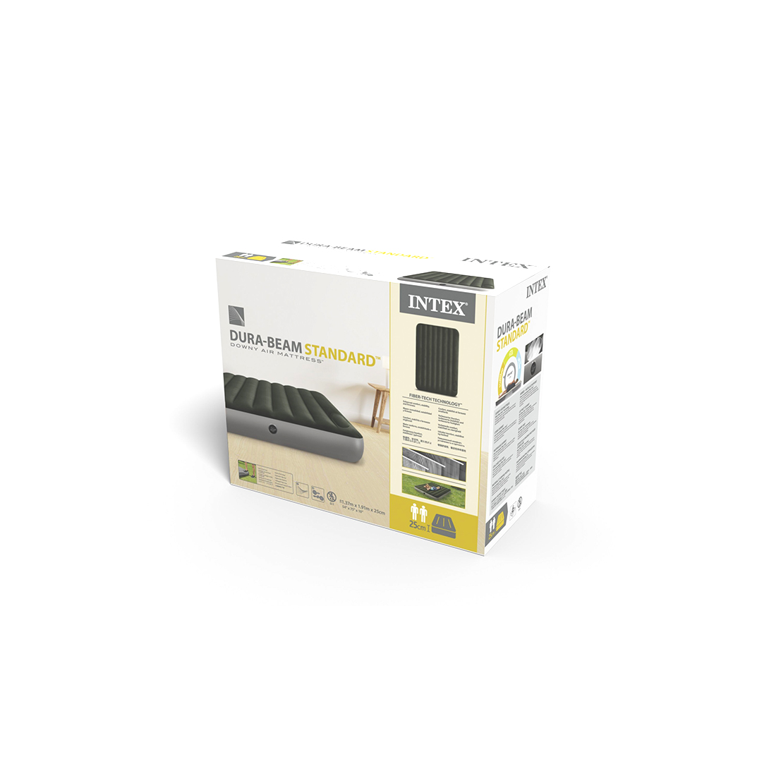 Матрас надувной Downy (Full) 191 х 137 х 25 см, INTEX, 64762, Винил, Встроенный ножной насос, Зелёный, Цветная коробка