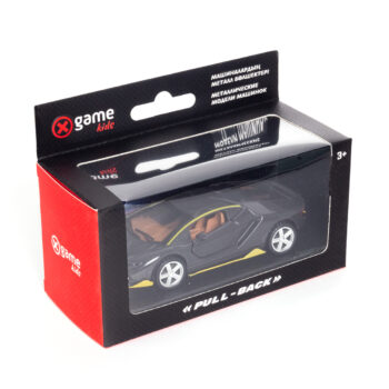 Металлическая машинка, X-Game Kids, 43740B, 1:32,Длина 12.5 см, Открывающиеся двери, Pull-back двигатель, Чёрная, Цветная коробка