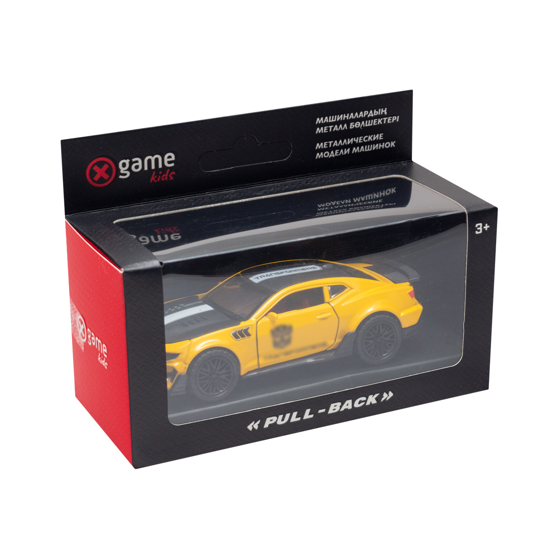 Металлическая машинка, X-Game Kids, 89600Y, 1:32, Длина 12 см, Открывающиеся двери и багажник, Pull-back двигатель, Жёлтая, Цветная коробка