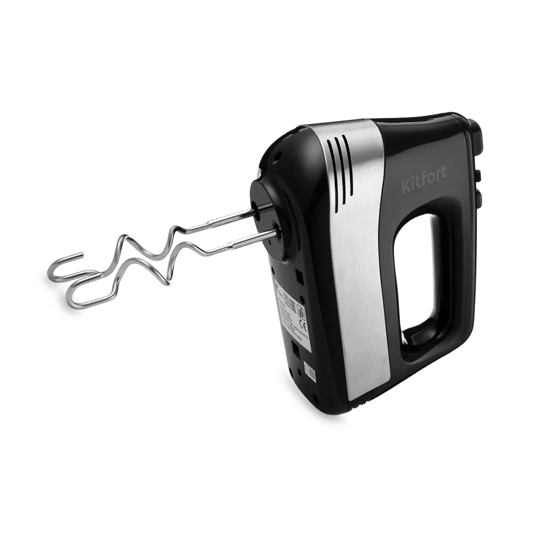Миксер, Kitfort, КТ-3072, 5 скоростей, 4 насадки, Турборежим, Мощность 500 Вт, Длина шнура 1 м, Черный/Стальной