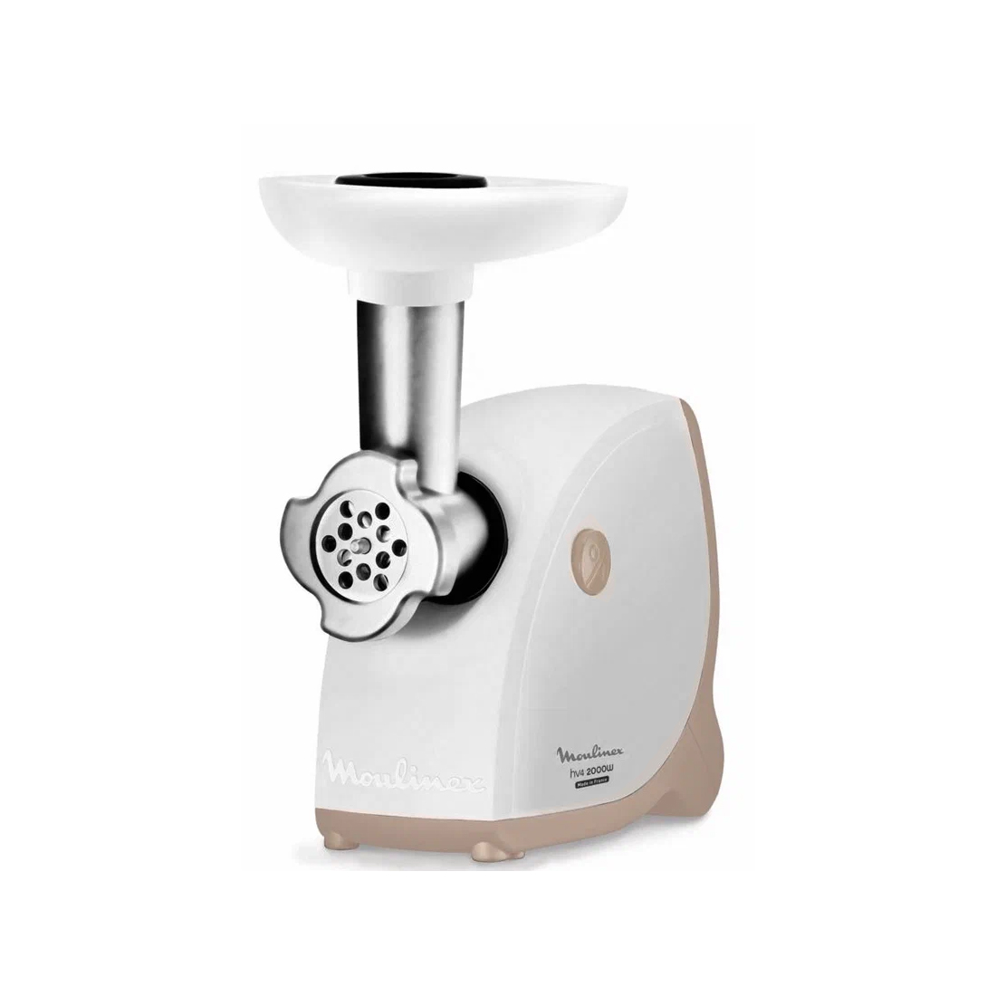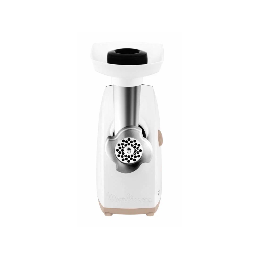 Мясорубка, Moulinex, ME461132, Мощность 1600 Вт, Скорость обработки мяса — 2 кг/мин, 2 решетки в комплекте, Насадки для колбасок и кеббе, Пластиковый лоток, Белый