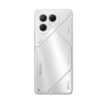 Мобильный телефон, TECNO, POVA 7 5G (LJ7) 128+8 GB, 6.78″ FHD+, Аккумулятор 6000 мАч, 50MPx/13MPx, MediaTek Dimensity 7300 Ultimate, Android 15, Fast Charge 45W, Wireless Charge 30W, (Magic Silver) Серебристый