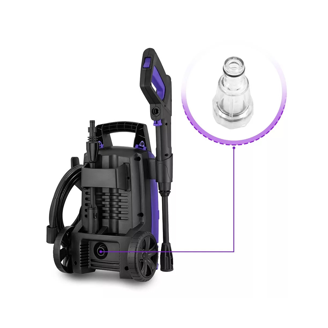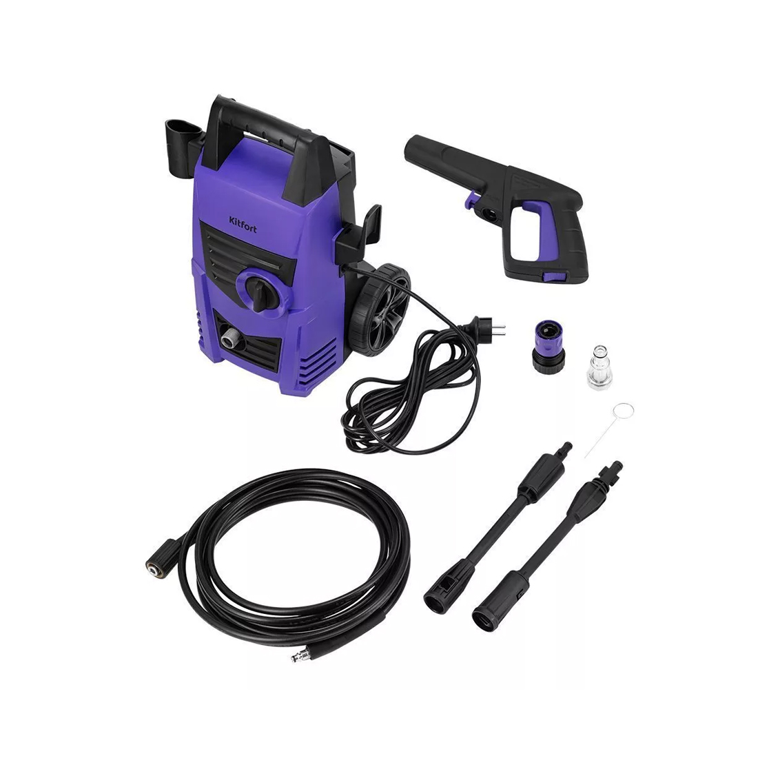 Мойка высокого давления, Kitfort, КТ-9164, Давление 7-10 Мпа, Расход воды 5.5-6.2 л/мин, Уровень шума < 92 дБ, Диаметр быстросъемного коннектора 19 мм, Длина высоконапорного шланга 5 м, Длина шнура 5 м, Мощность 1400 Вт, Черный/ Фиолетовый