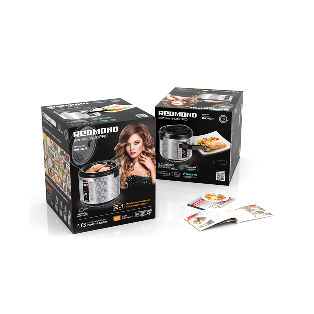 Мультикухня, Redmond, RMK-M271, Сковорода в комплекте, Подъемный нагревательный элемент 830 Вт, Автоматических программ 16, Покрытие чаши антипригарное DAIKIN, Объем чаши 5 л, Дисплей LED, Стальной