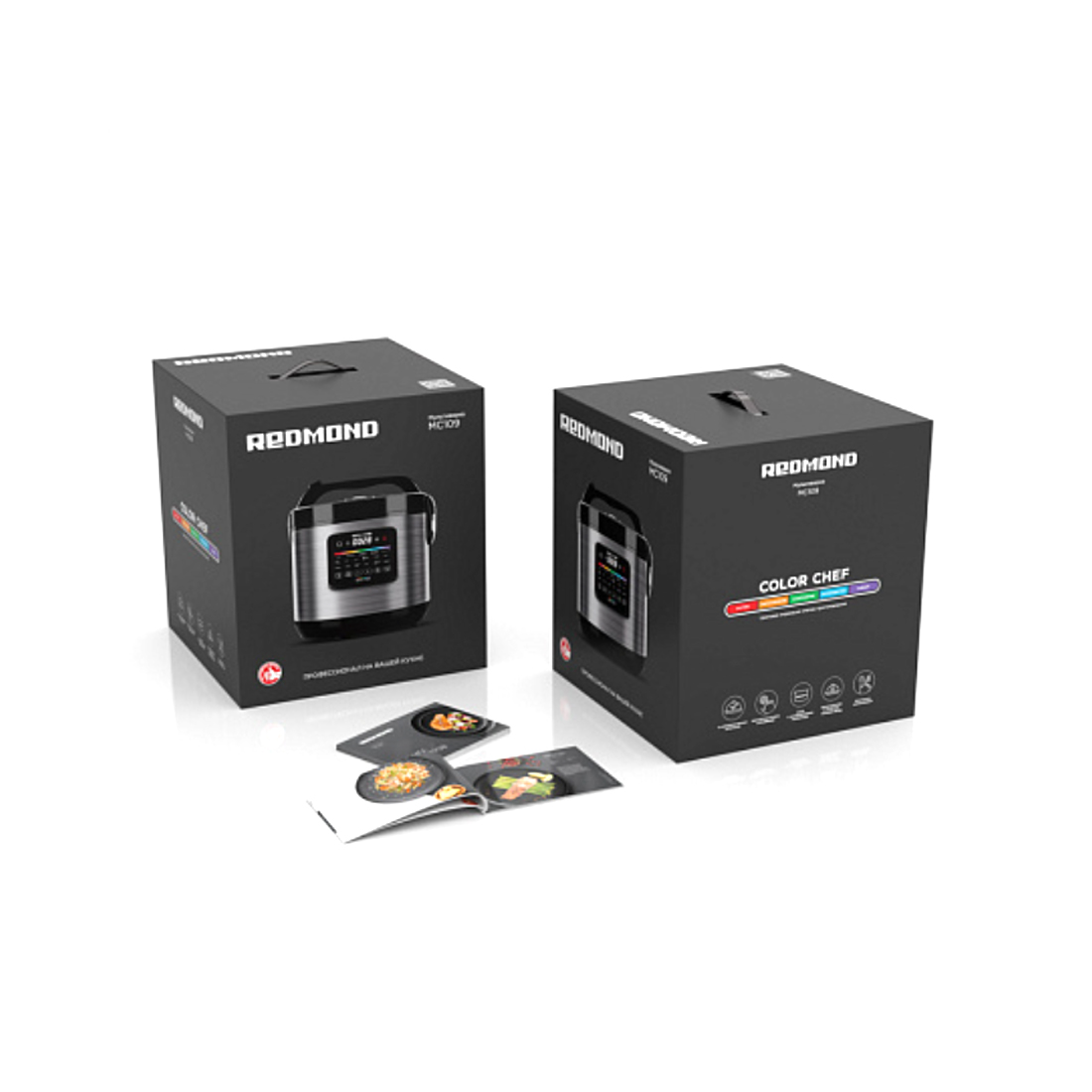 Мультиварка, Redmond, MC109, Объем чаши 5л, 14 автоматических программ, Сенсорное управление, Термодатчик, LED дисплей, Таймер, Автоподогрев, Мощность 860 Вт, Длинна шнура 1.2м, Черный/стальной