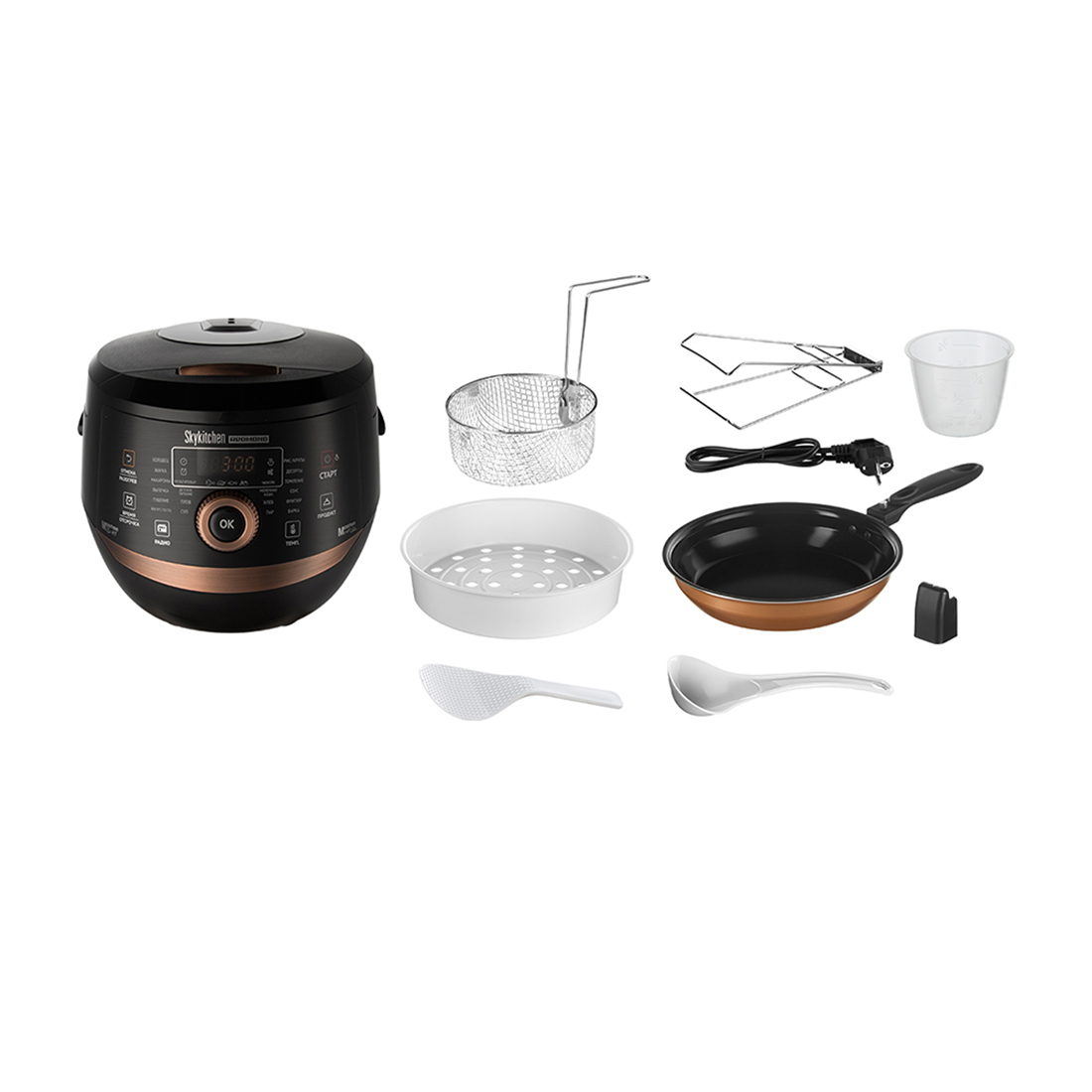 Мультикухня SkyKitchen CB391S, выпущенная в коллекционной серии Chrome and Bronze, сочетает в себе целый ряд инновационных разработок REDMOND для автоматического приготовления домашних блюд любых кухонь мира.