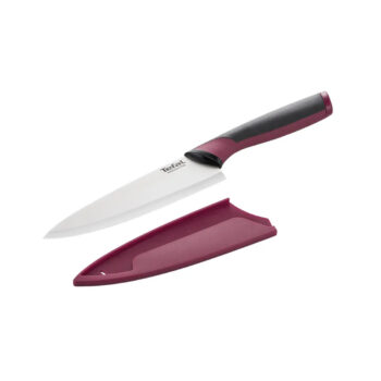 Набор кухонный шеф-нож и ножницы, Tefal, K250S225, 2 предмета, Нержавеющая сталь, Покрытие Soft-Touch, Черный/Бордовый