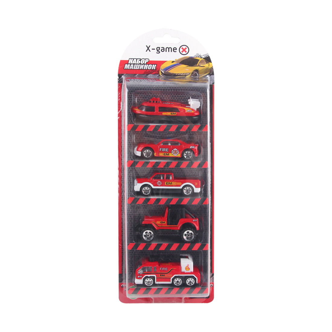 Набор металлических машинок, X-Game, XGCM5E, Серия «ПОЖАРНЫЕ», (5 шт. в блистере), Метал-Пластик