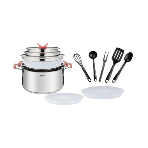 Набор посуды, Tefal, Opti’space G720SD74, 13 предметов, Кастрюли с крышками 24/20/18см (5,2/3/,2,1л), Пластиковые крышки 20/18см, Кухонные аксессуары 5шт, Все типы плит, Нержавеющая сталь