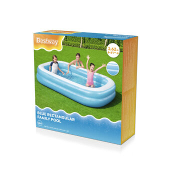 Семейный надувной бассейн Blue Rectangular 262 х 175 х 51 см, BESTWAY, 54006, Винил, 778 л., 6+, Сливной клапан, Синий матовый, Цветная коробка