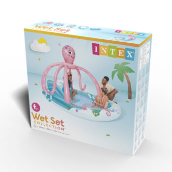 Детский надувной игровой бассейн Friendly Octopus 234 х 201 см, INTEX, 56138NP, Винил, 229л., 2+, Разбрызгиватель, Горка, Надувные кольца, Розово-голубой, Цветная коробка