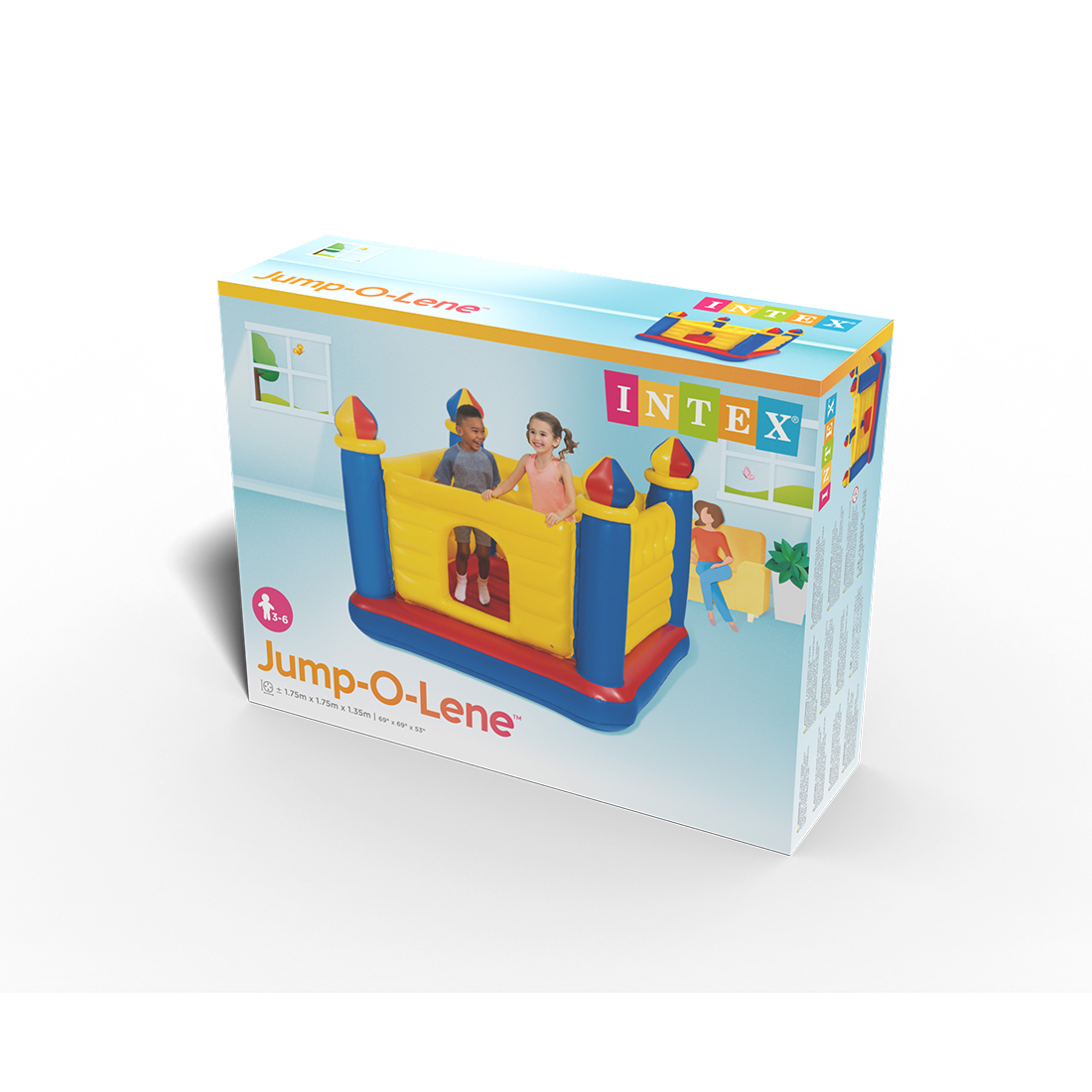 Надувной батут Jump-o-lene Castle Bouncer 175 х 175 х 135 см, Intex, 48259NP, Винил, Макс. нагрузка 54 кг, Желто-синий, Цветная коробка