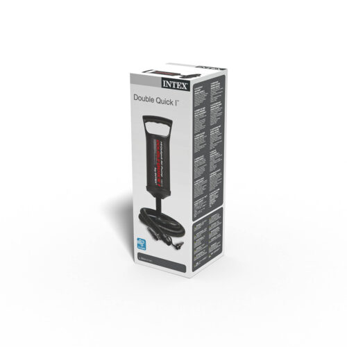 Насос ручной Double Quick I Hand Pump 29 см., INTEX, 68612, Пластик, Шланг 0.8м., 3 насадки, Объем камеры 0.9 л., Черный, Цветная коробка