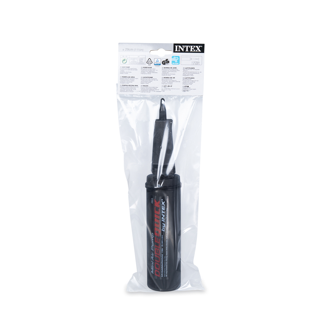 Насос ручной Double Quick Mini Hand Pump 29 см., INTEX, 69613, Пластик, Объем камеры 0.45 л., Черный, Пакет