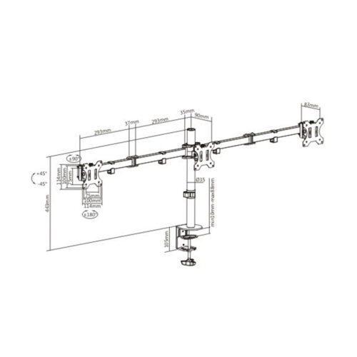 Настольный кронштейн для мониторов, Brateck, LDT12-C034N, 13″-27″, Нагрузка 3х7 кг., Наклон +/- 45°, Поворот +/- 90°, Вращение монитора +/- 180°, VESA 75×75,100×100