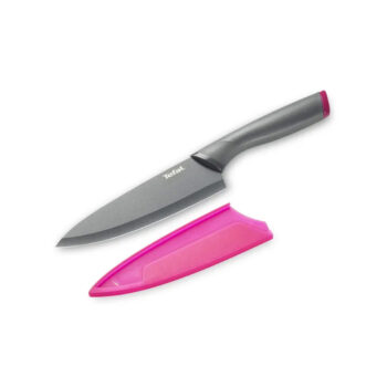 Нож-шеф, Tefal, Fresh Kitchen K1220304, 15см, Нержавеющая сталь с титановым покрытием, Чехол, Серый-розовый