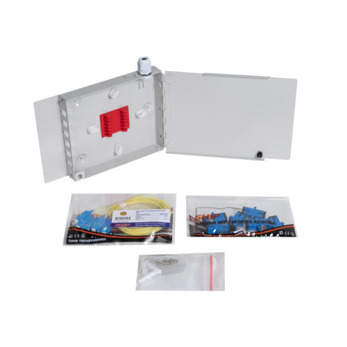 Оптический кросс укомплектованный, А-Оптик, АО-106 на 6 портов, SC/UPC Simplex, Металлический, Настенный, Серый