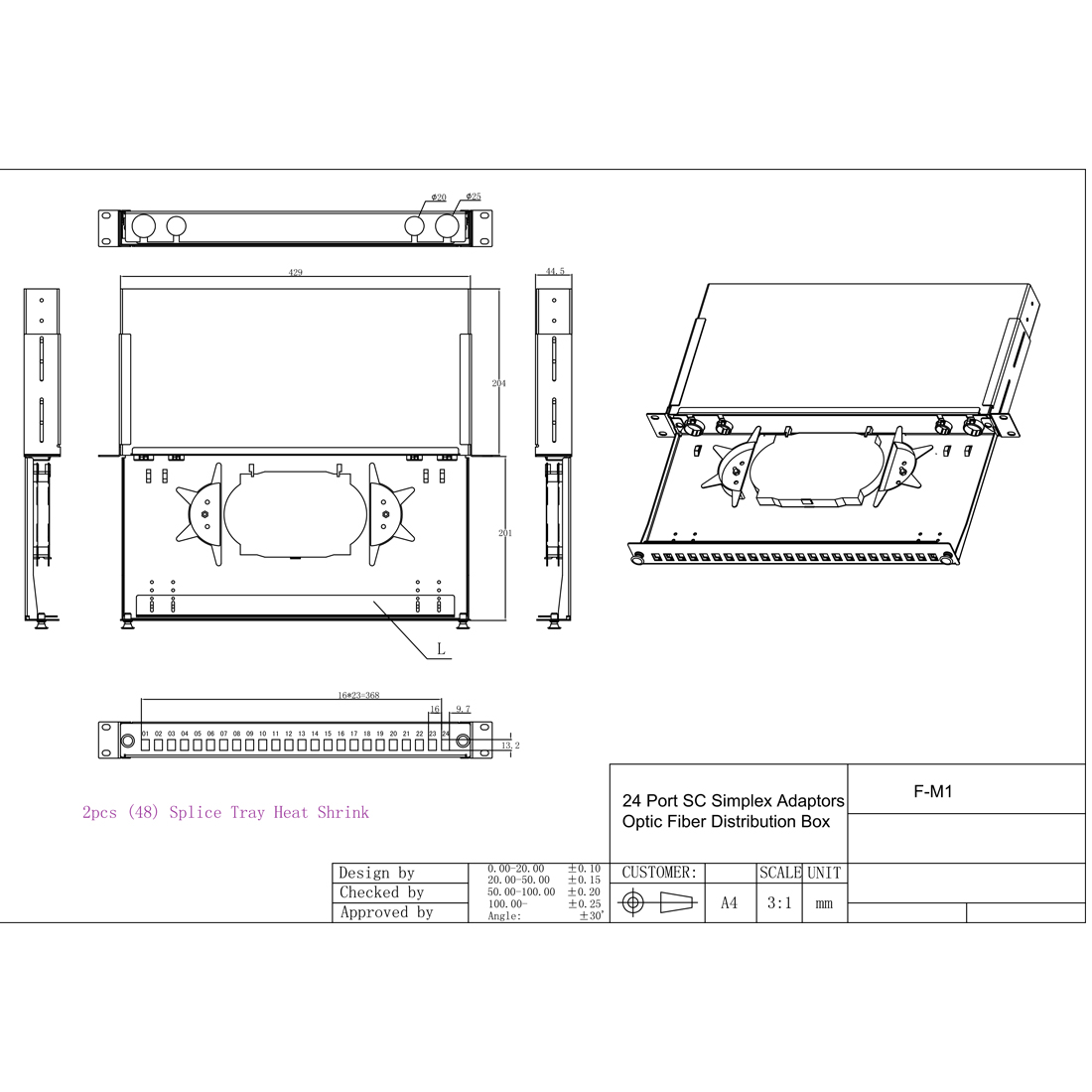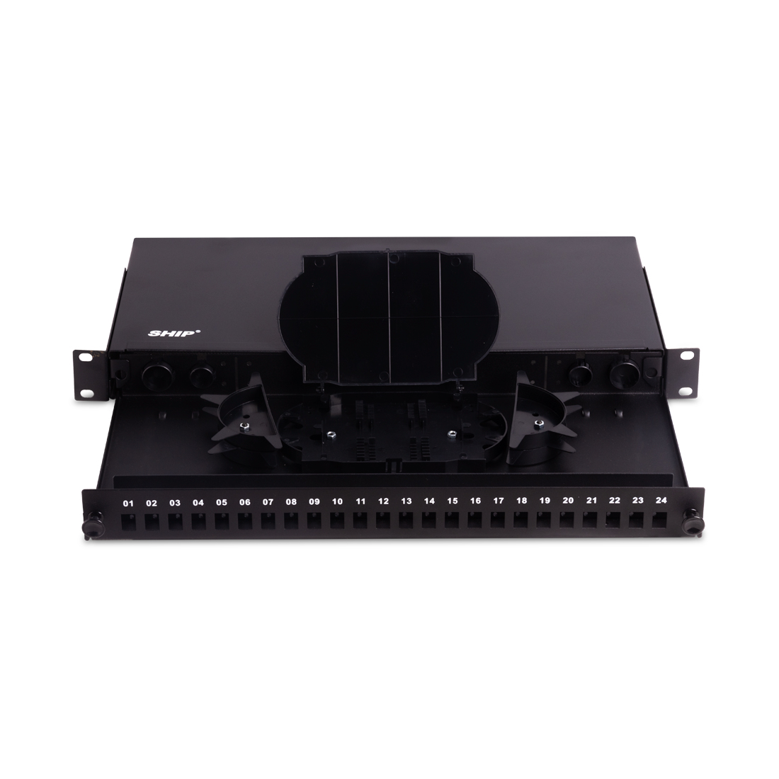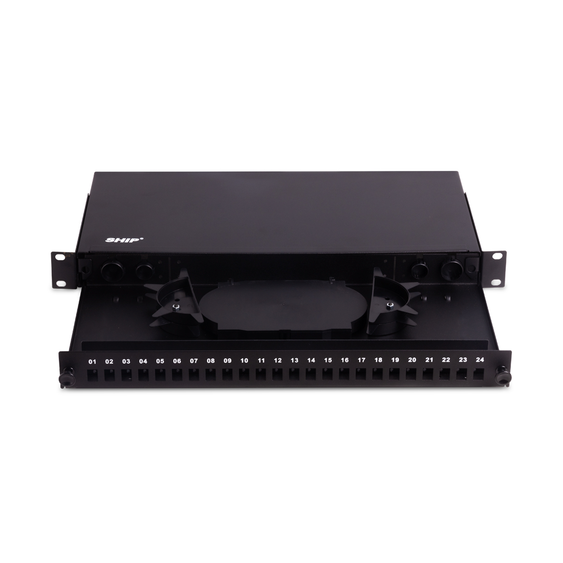 Оптический кросс, SHIP, F-M1, 19″ (1U), 24 Порта SC, Simplex, LC Duplex, Без адаптеров, Чёрный