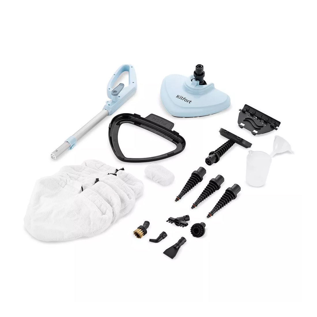 Паровая швабра, Kitfort, КТ-1044, Объем 350 мл, Подача пара 8-35 г/мин, Регулятор мощности, Мощность 1500 Вт, Длина шнура 8м, Голубой
