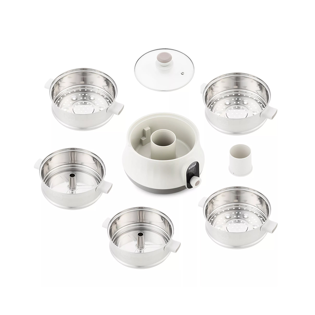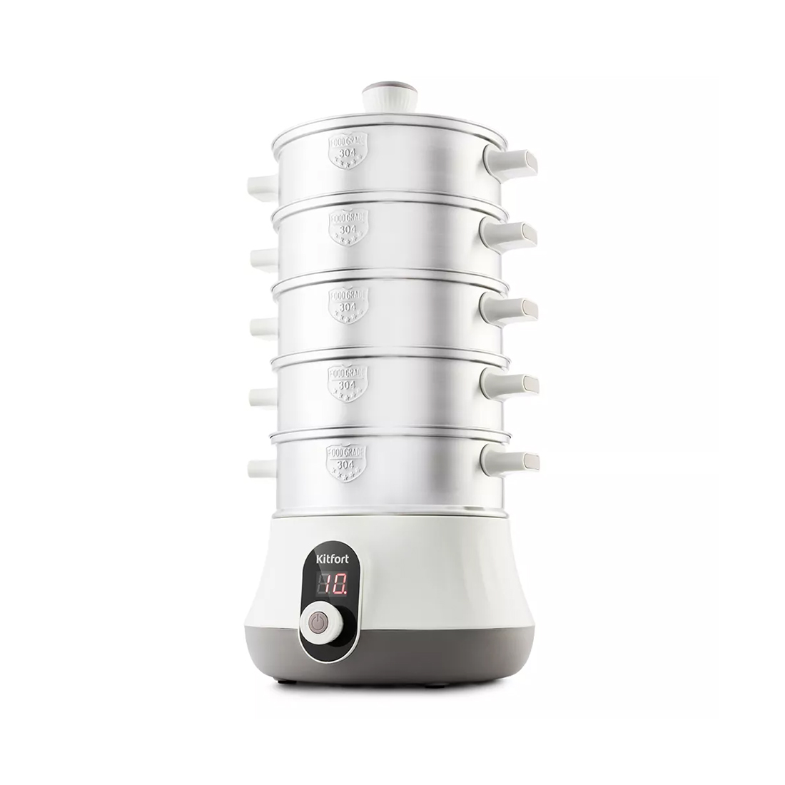 Пароварка, Kitfort, КТ-2035, Максимальная мощность 600 Вт, Объем резервуара для воды 1 л,Общий объем 8 л, Количество ярусов 5 шт, Объем паровых корзин 1.6 л, Материал паровых корзин нержавеющая сталь, Цвет белый