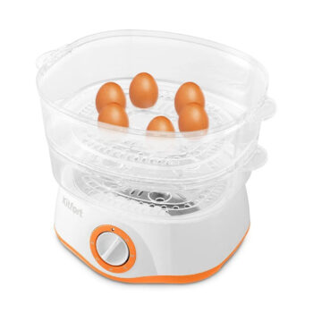 Пароварка, Kitfort, КТ-6452, Мощность 400 — 475 Вт, Время приготовления до 60 минут, Ёмкость резервуара для воды 0,6 л, Ёмкость паровой корзины 1 1,8 л, Ёмкость паровой корзины 2 1,87 л Цвет белый, оранжевый