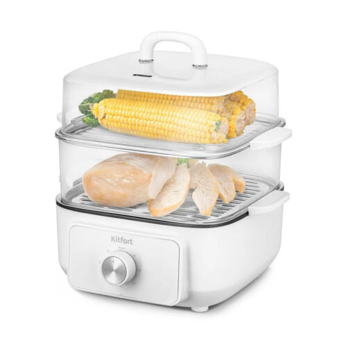 Пароварка, Kitfort, КТ-6484, 2 корзины, Объем парового отсека 3.5л, Объем резервуара для воды 2.3л, Мощность 1000Вт, Длина шнура 0.8м, Белый