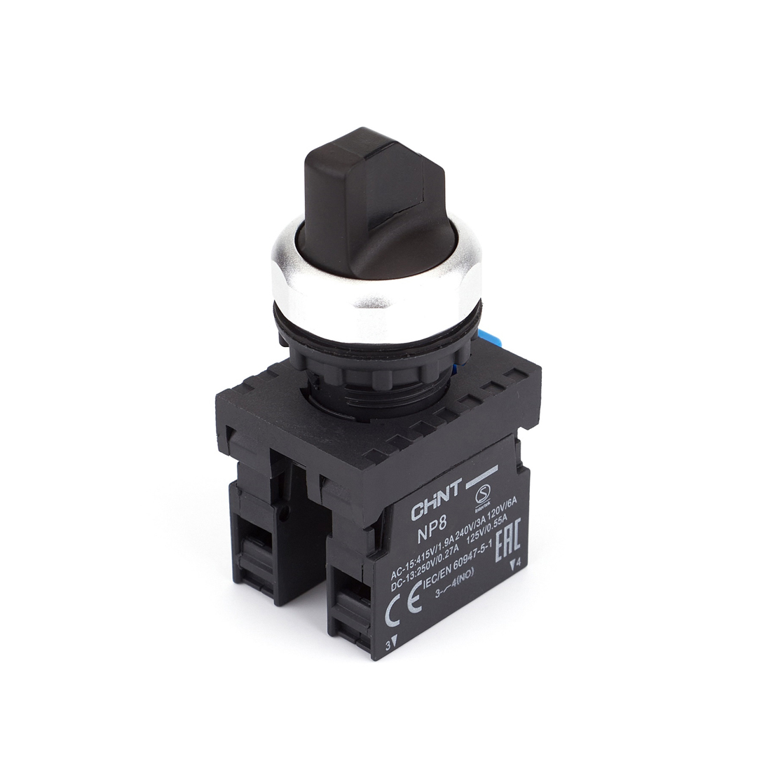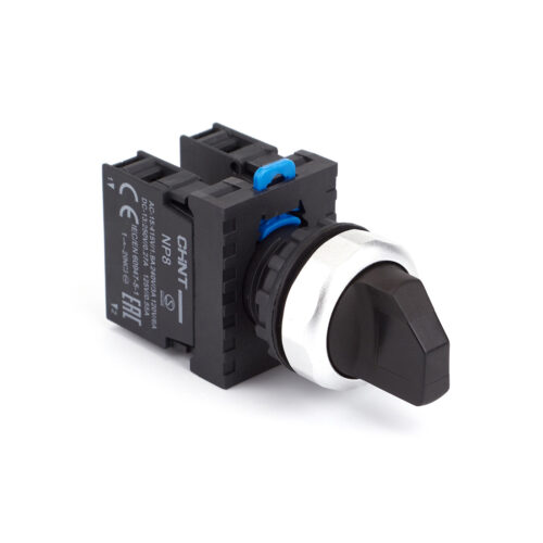 Переключатель без подсветки, CHINT, 578129 NP8-11X/212, 2 положения с фиксацией, чёрная 1НО+1НЗ IP65