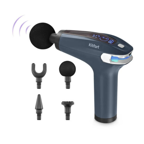 Перкуссионный массажер, Kitfort, КТ-2997, 4 насадки, 8 скоростей, Индикация работы, Съемная ручка, Цвет темно-синий