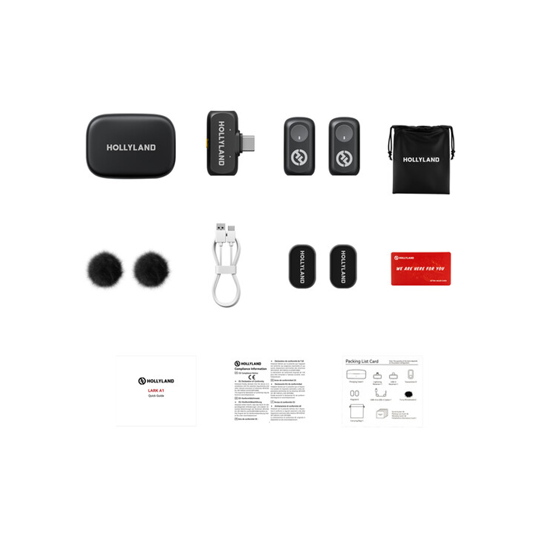 Петличный микрофон, Hollyland, Lark A1 Duo, 48 кГц/24 бит Hi-Fi звук, 3-уровневое интеллектуальное шумоподавление, Универсальная совместимость, Регулировка эквалайзера и реверберации, Автоматическая защита от перегрузки, Срок службы батареи 54 часа, Диапазон прямой видимости 200 м, Компактная магнитная конструкция, 6-уровневая регулировка усилени, Черный