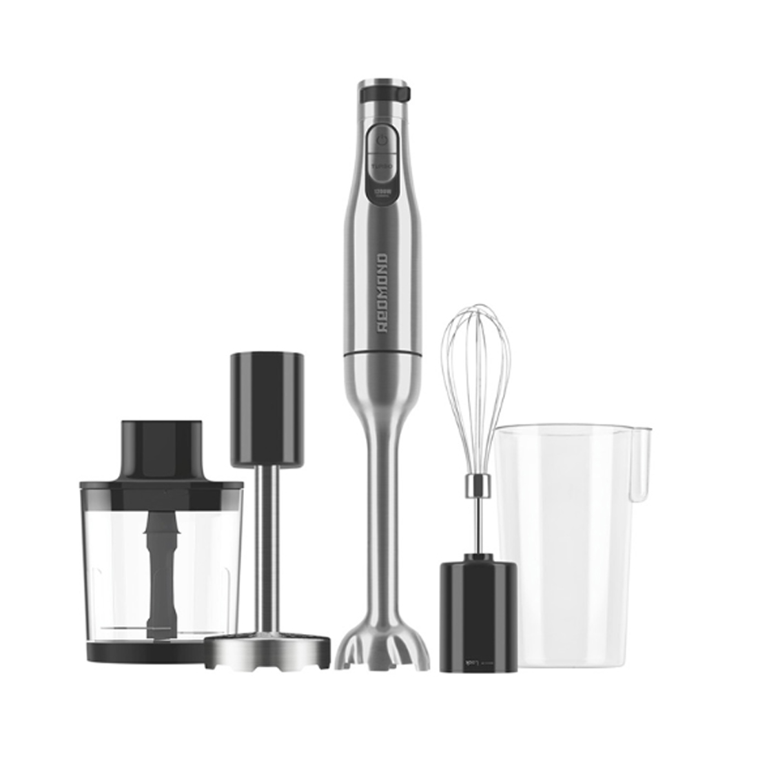 Погружной блендер, Redmond, BH401, Погружной, Электромеханичесое управление, 6 скоростей, Скорость работы 12000–15000 об/мин, Режим турбо, Плавная регулировка скорости, Серый