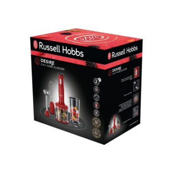 Погружной блендер, Russell Hobbs, 24700-56, Погружной, Мощность 500W, 2 скорости, Пластик, 12000 об/мин, Венчик для взбивания, Мини-измельчитель, Красный