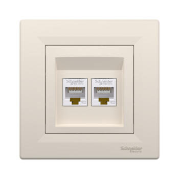 Розетка двойная компьютерная, SE, EPH4400123, Asfora RJ45 в сборе кремовый