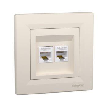 Розетка двойная компьютерная, SE, EPH4400123, Asfora RJ45 в сборе кремовый