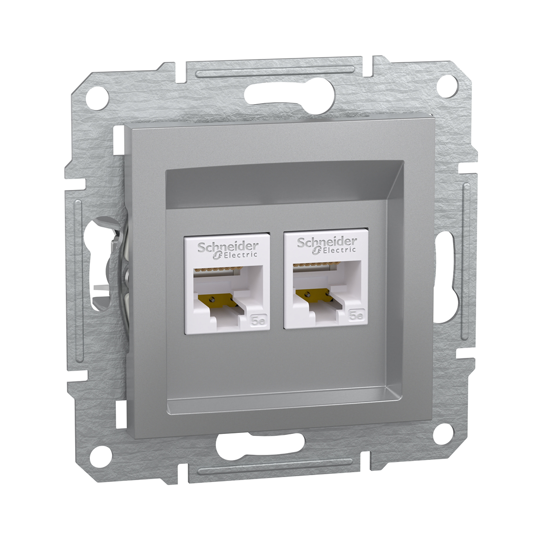 Розетка компьютерная двойная, SE, EPH4400161, Asfora RJ45 кат.5e механизм алюминий