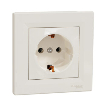 Розетка с заземлением SE EPH2900123 Asfora 16А в сборе винт. клеммы кремовый