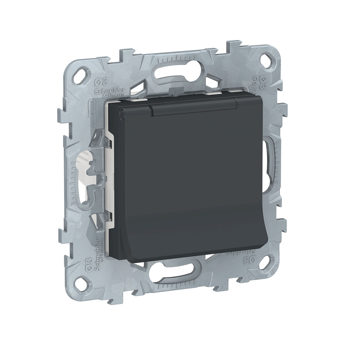 Дополнительное описание: Розетка Schneider Electric UNICA NEW (антрацит) с заземлением, со шторками, с крышкой предназначена для сетей до 250 В на ток до 16 А.