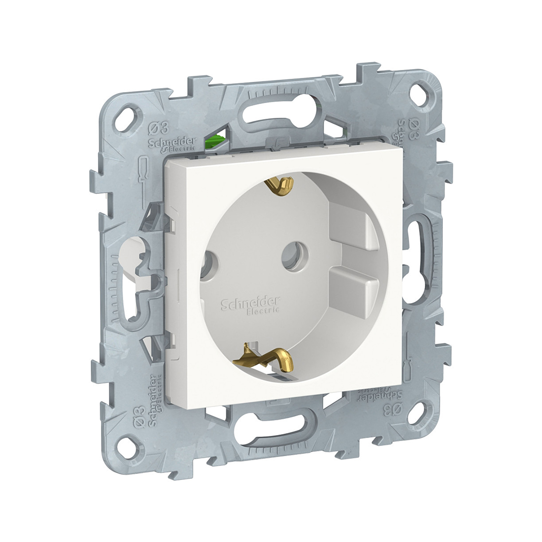 Розетка с заземлением, SE, NU505718, Unica New с з/к быстрозажимные клеммы белый