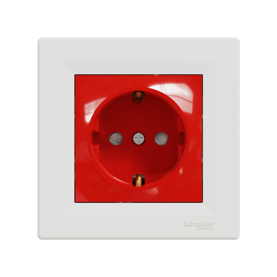 Розетка с заземлением со шторками SE EPH2900521 Asfora 16А в сборе винт. клеммы белый+красный