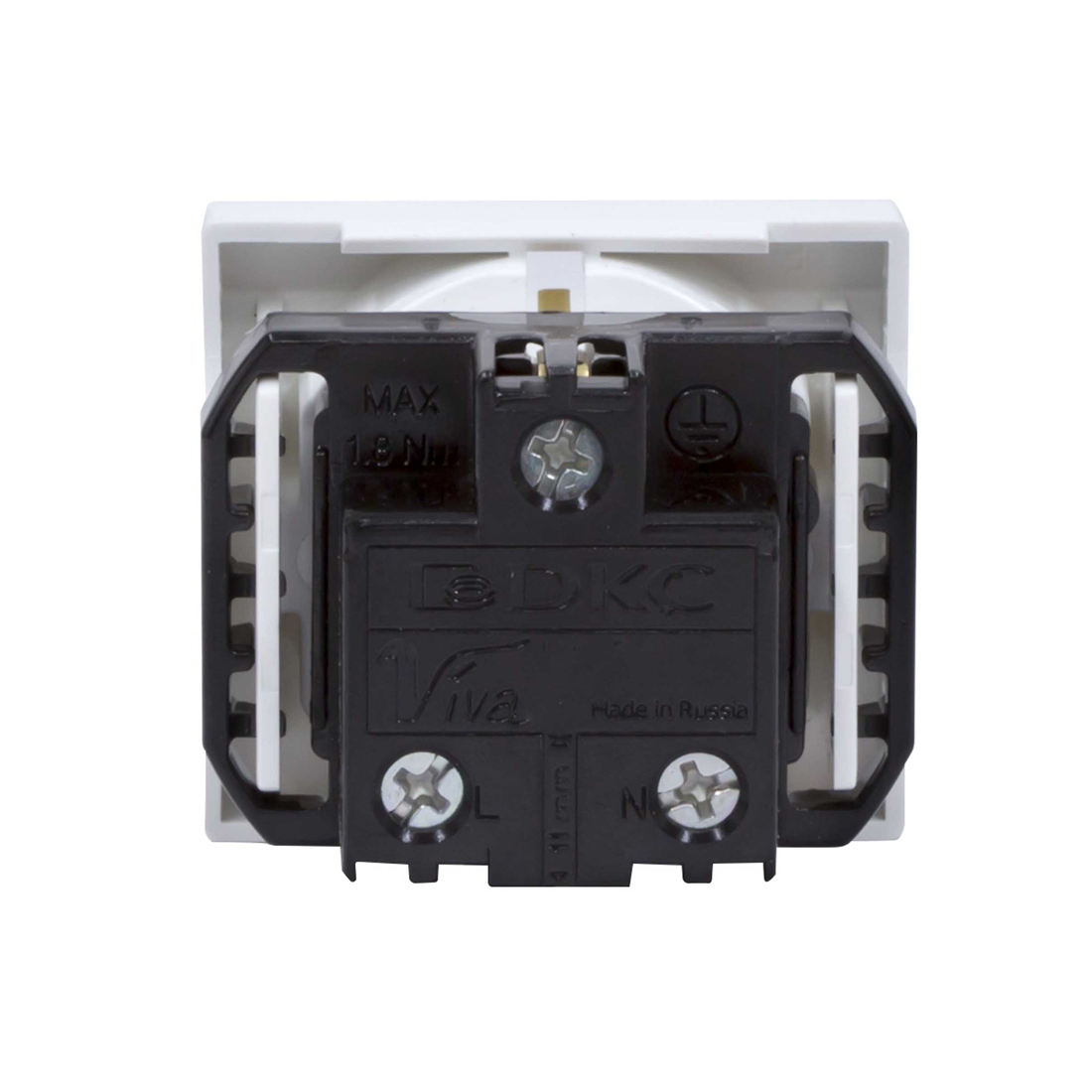 Розетка силовая, DKC, 45005, серия Viva, 2Р+Е, со шторками, с заземлением, 2 мод, цвет белый
