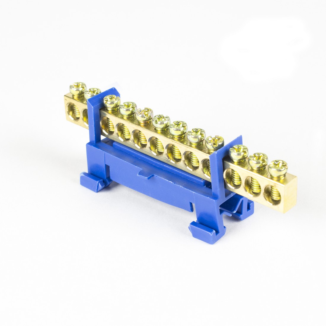 Шина нулевая, Deluxe, TS-0609F 12 групп, 6х9 мм (голубая) на DIN-рейку